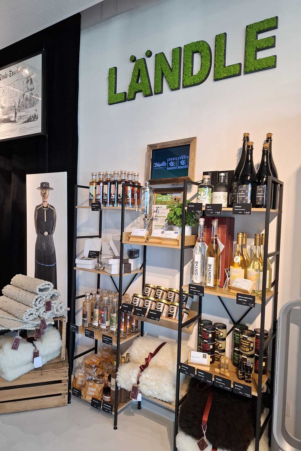 Das Regal wird von der Ländle Qualitätsprodukte Marketing GmbH gemietet und verschiedensten Ländle Gütesiegel-Partner:innen als Verkaufs- und Präsentationsfläche zur Verfügung gestellt. Der Fokus liegt hierbei auf länger haltbaren Lebensmitteln und Genussmitteln. Aktuell finden sich Produkte von sechs Partnern im Regal: