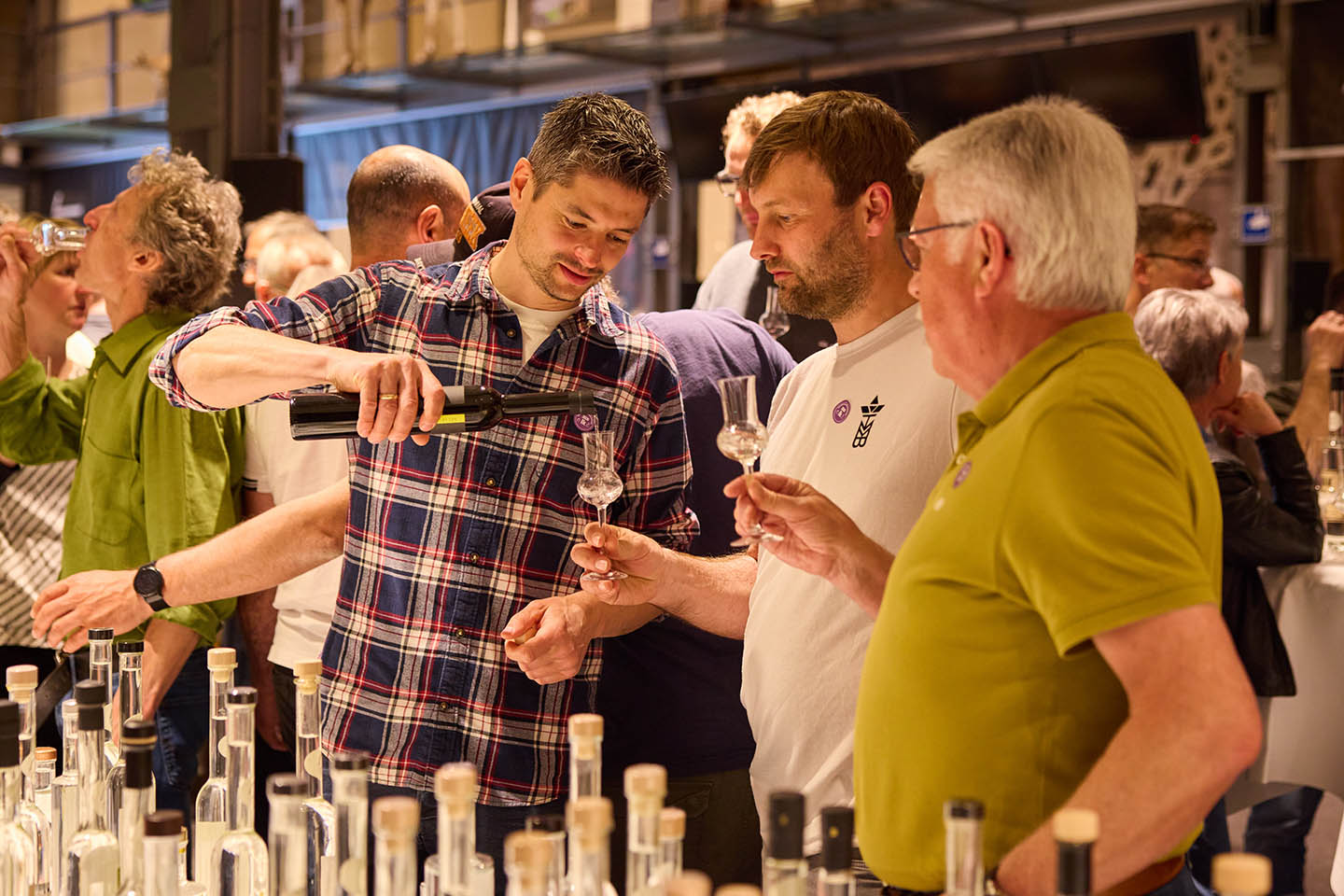 Für die Bewertung der eingereichten Produkte erfolgte im Vorfeld eine sensorische Überprüfung – also eine Verkostung mit den Sinnen (Auge, Nase, Gaumen). Dazu wurden die Proben anonymisiert und von zwei geschulten Fachjurys beschrieben und bewertet. Neben heimischen Most- und Edelbrand-Sommeliers wurden die Jurys durch Fachleute aus der Schweiz ergänzt. Die zweite Stufe der Beurteilung war die Untersuchung der Proben im Labor. Hier wurden wichtige gesetzliche Vorgaben (z.B. Alkoholgehalt etc.) der verschiedenen Produkte überprüft.