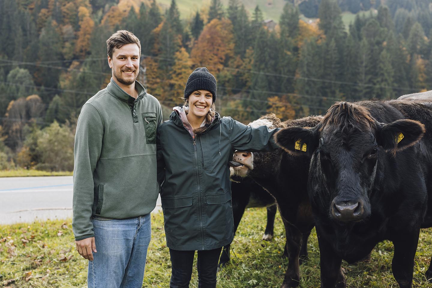 Oberhalb von 1.000 Metern gibt es kein „Sie“ mehr. In den Bergen ist man mit allem und jedem verbunden. Im Montafon geht man einen Schritt weiter und senkt die „Du-Grenze“ bis ins Tal. Unter diesem Motto setzt die Montafoner Tourismusgesellschaft auf persönliche Beziehungen. Man ist per Du mit den Menschen und auch der Natur. Am Biohof von Fabian Mangard und Victoria Boric in Gortipohl ist das nicht anders. Dort ist man – symbolisch gesprochen – auch mit den Tieren per Du. Eben ganz nah dran – und zwar vom ersten Tag an, an dem sie auf den Hof kommen. „Jedes Tier hat einen Namen und soll jenen Respekt und jene Würde bekommen, die es verdient“, ist für den 29-Jährigen ein liebevoller Umgang mit seinen Angus-Rindern eine Selbstverständlichkeit. Der jüngst vom Land Vorarlberg verliehene Tierschutzpreis für vorbildliche Nutztierhaltung unterstreicht dies und ist mehr als nur eine Auszeichnung für den Bio-Betrieb.