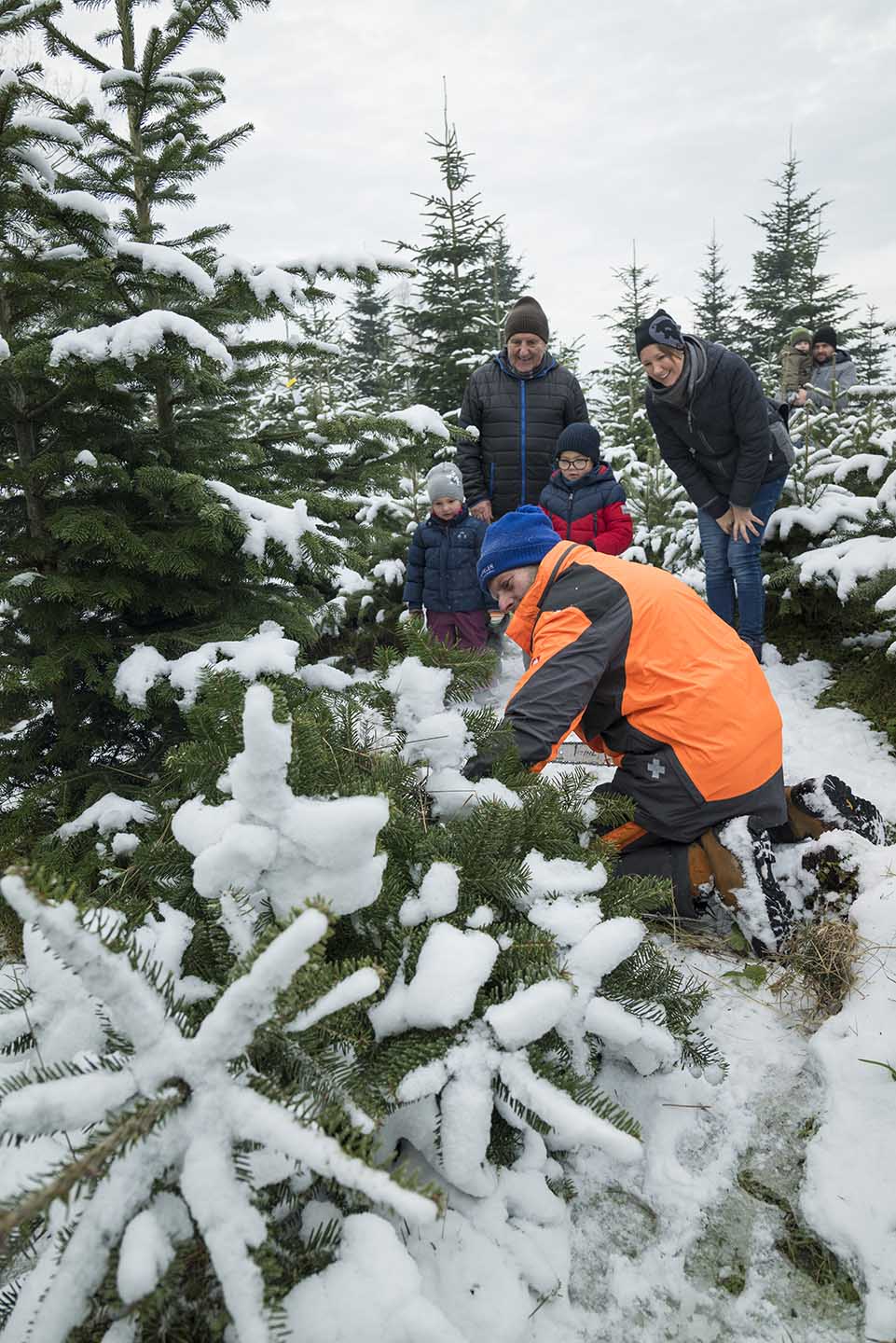 Mit großem persönlichem Engagement geht der selbständige Steinmetz in Sachen Christbaum ans Werk. So ist er fest von den Mondzeichen überzeugt. "Ich habe damit in den letzten Jahren gute Erfolge erzielt. Nach meiner Erfahrung sind die Blütentage die besten. Ganz schlecht sind Wurzeltage." Übrigens suchen viele seiner Stammkunden die Bäume schon frühzeitig aus. Manche schauen über das Jahr mehrmals vorbei, um zu sehen, wie ihr persönlicher Baum gedeiht. Erwin Bauer betreibt die Christbaumzucht in zweiter Generation. Manche seiner Kunden kennt er schon von Kindestagen an. "Heute bringen sie selbst ihre Kinder oder Enkel mit." Wenn das Weihnachtsfest nahe rückt, ist das für ihn so wie ein jährliches Klassentreffen. Klar, dass es da auch warme Getränke und Kekse gibt.