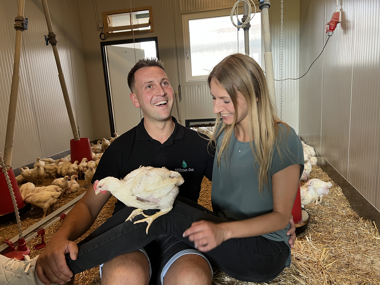 Unsere Hühner wachsen unter besonders tierfreundlicher Haltung auf, mit erhöhter Sitzmöglichkeit, erhöhtem Platzangebot sowie einem Außenscharraum, durch den ein Austausch mit Frischluft gegeben ist.