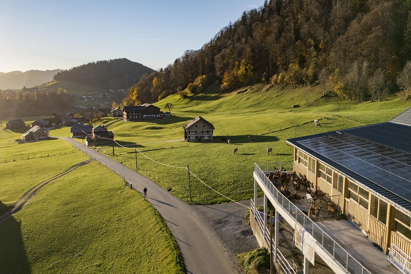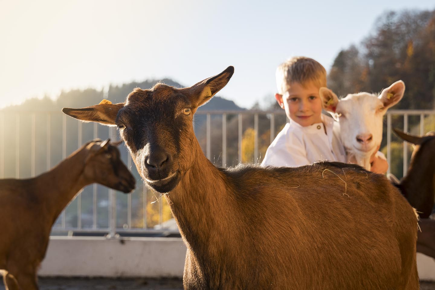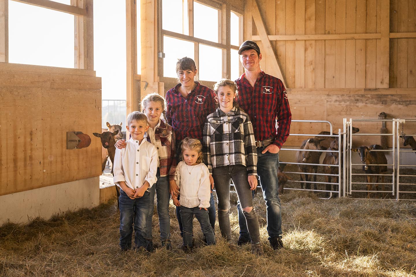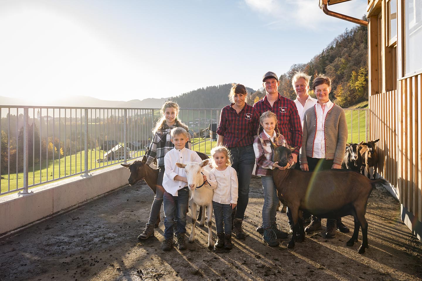 Eine klassische Work-Life-Balance kennen Kerstin und Christoph Schwarz nicht. „Die haben bei uns nur die Kühe und Ziegen“, zeigt die 41-Jährige auf den vor kurzem fertig gestellten Stallanbau mit großen Fenstern und Zugang ins Freie. Dort drinnen lassen es sich die Geißen gut gehen. Eine reibt gerade ihr Fell an der Massagebürste, andere liegen gemütlich im Stroh und dann gibt es noch solche, die einen neugierigen Blick ins Freie wagen. Denn während sich an diesem Novembertag unten im Rheintal der Nebel sammelt, scheint in Hittisau die Sonne und taucht die Natur in ein herrliches Farbenspiel aus bunt gefärbten Bäumen. Ein Traumwetter im Spätherbst, den auch die Ziegen genießen. Was die Milch betrifft, sind sie dann durchaus spendierfreudiger. „Sie lieben es, wenn es trocken ist, nasse Füße mögen sie hingegen überhaupt nicht“, sagt die Magistra für Betriebswirtschaft und Gesundheitssport, die in der Landwirtschaft eine neue Berufung gefunden hat. Die Tochter des ehemaligen Spitzenskiläufers Hubert Berchtold, der einen Weltcupsieg im Riesentorlauf feierte, teilt sich die Arbeit mit ihrem Mann Christoph. Christoph, der seine Energie nicht nur zuhause in die eigene Zucht steckt, sondern sie auch als Obmann des Ziegenzuchtverbandes Bregenzerwald weiter nach außen trägt. Vor fünf Jahren übernahm das Paar den elterlichen Hof von Mina und Klaus Schwarz und führt ihn als Generationenbetrieb weiter.