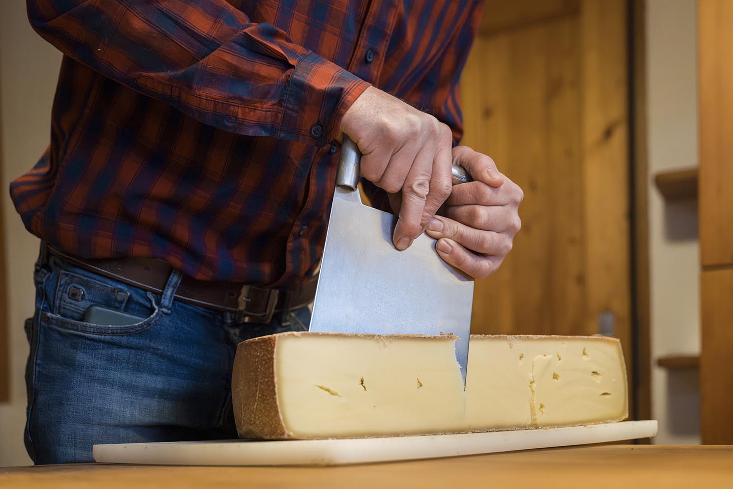 Ihre Philosophie teilt die ganze Familie. So ist es der Anspruch, eine moderne Landwirtschaft zu führen und trotzdem in Zufriedenheit und Einklang mit der Natur zu leben, was auch alte Traditionen des Handwerks umfasst. Wenn die Familie die Sommer mit den Kühen und Ziegen sowie weiteren Tieren auf der Glockenplatte-Alpe verbringt, wird die Milch noch handgeschöpft zu Alpkäse verarbeitet. Statt mit einem mechanischen Pumpverfahren wird dabei der Käsebruch von Hand in die Formen geschöpft. Dies ermöglicht eine sorgfältige und kontrollierte Verarbeitung, die zu einem besonderen Geschmack und einer feinen Textur führt. Nur noch wenige Betriebe wenden diese Methode an. Senn Christoph Schwarz arbeitet dabei wie zu Großvaters Zeiten – die körperliche Anstrengung ist groß.