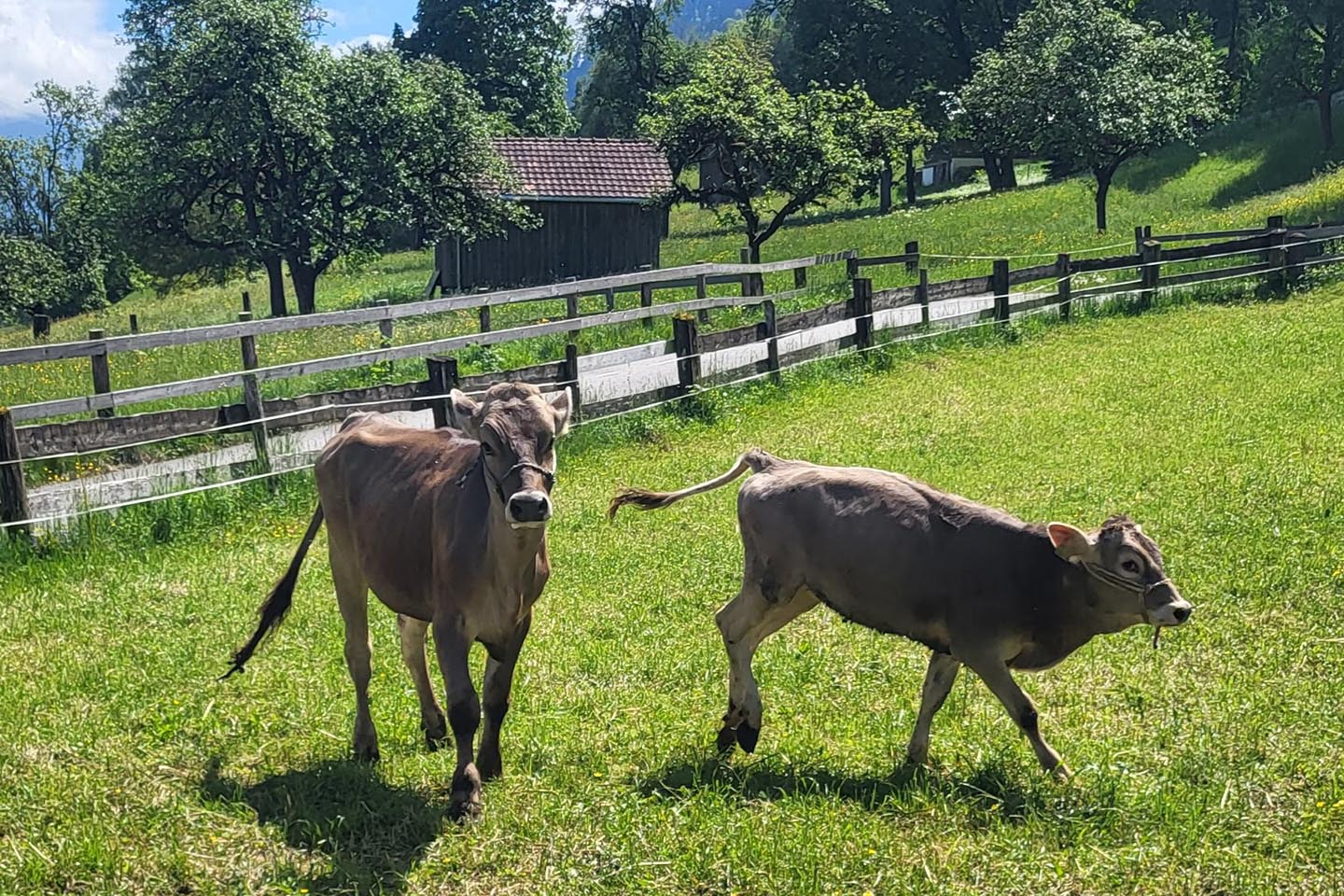 Die Tiere am Hof der Familie Stark wachsen gesund, ruhig und artgerecht auf. Die Kälber stammen von befreundeten Betrieben, die dieselben hohen Standards einhalten. Die Rinder verbringen rund drei Jahre am Hof und werden in den Sommermonaten auf die Alpen im Gamperdonatal gealpt – Bewegung, frische Luft und saftige Weiden inklusive. Auch die Hühner werden mit viel Platz und in ruhiger Umgebung gehalten.