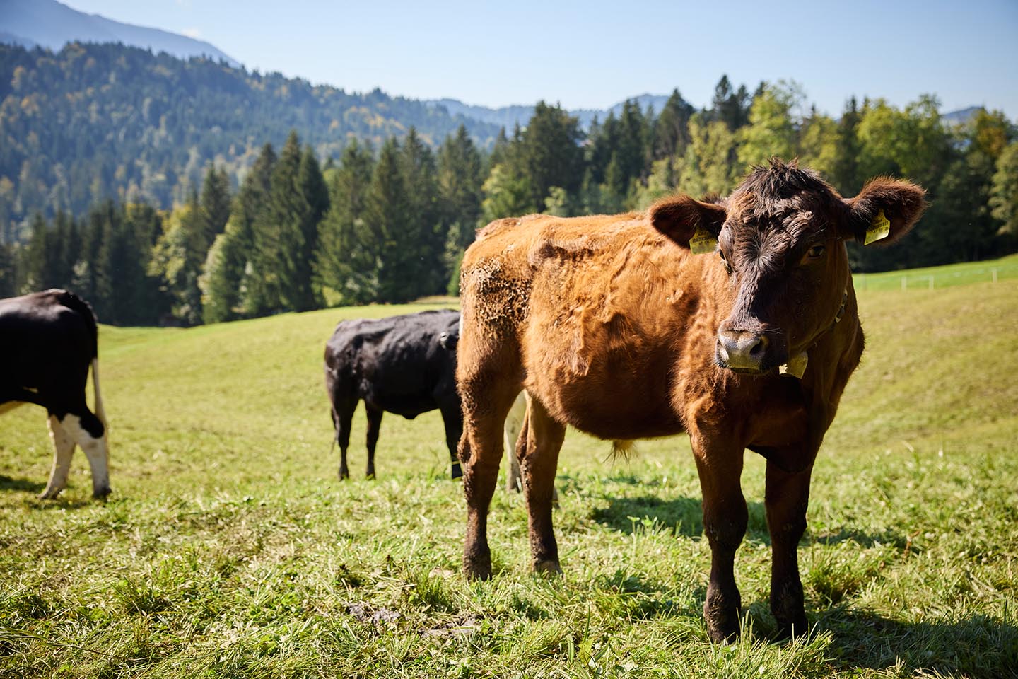 2024 lag in Österreich der Fleischkonsum bei 58 Kilogramm pro Kopf. Dabei macht der Verzehr von Rind- und Kalbfleisch rund zehn Kilogramm aus. Diese Mengen können die Rinderproduzent:innen im Land komplett abdecken, denn der Selbstversorgungsgrad in Österreich liegt bei Rindfleisch bei 134 Prozent, in Vorarlberg liegt er bei rund 60 Prozent. Trotzdem werden Tiere und Fleisch importiert, aber auch exportiert. Die Rinderproduktion ist neben der Milchproduktion der bedeutendste landwirtschaftliche Bereich in Österreich.