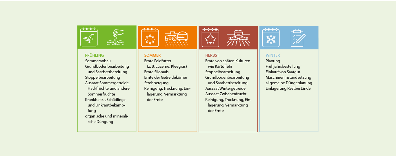 geplant werden. Zudem ist die Landwirtin oder der Landwirt sehr von den Wetterbedingungen abhängig. Hier müssen die Produzent:innen