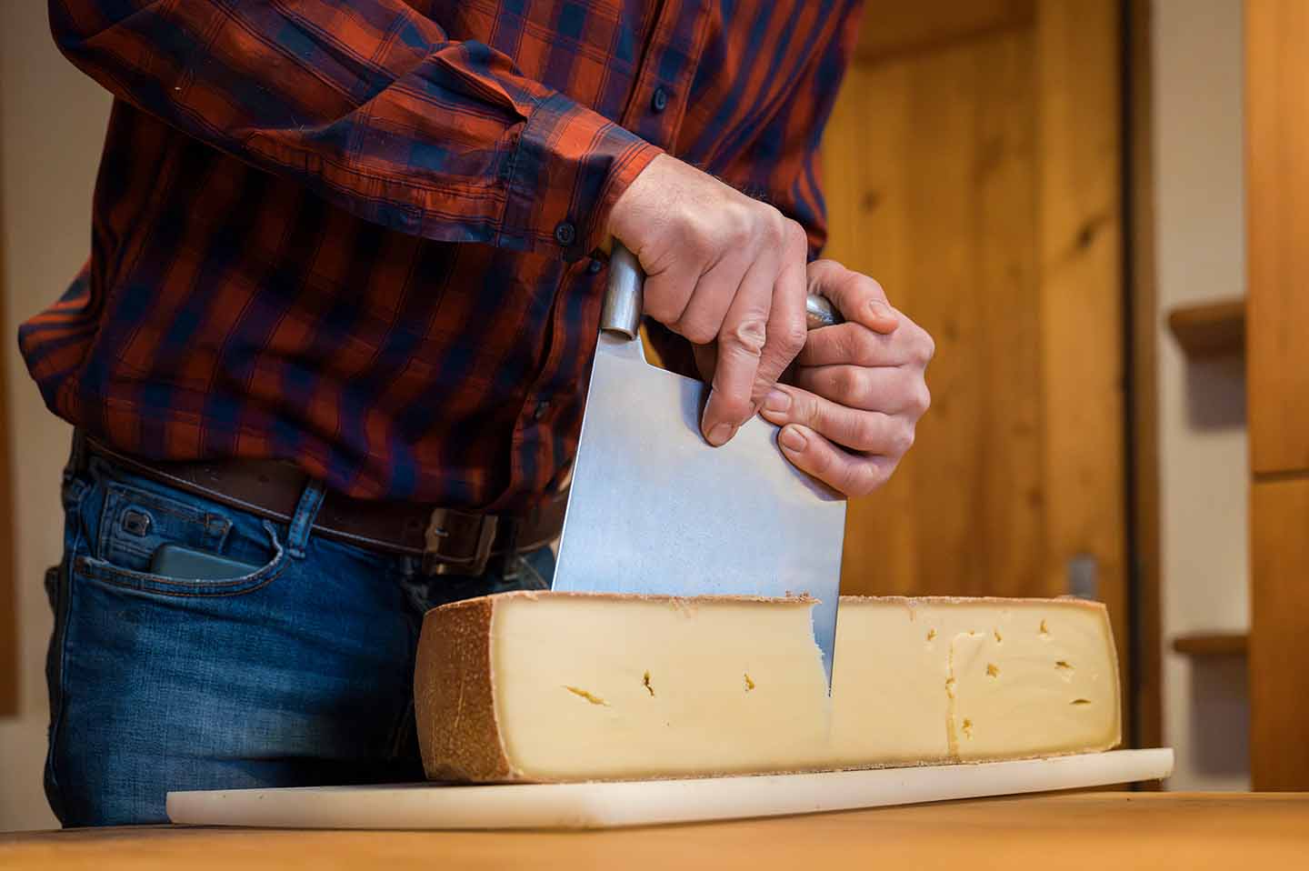 Ihre Philosophie teilt die ganze Familie. So ist es der Anspruch, eine moderne Landwirtschaft zu führen und trotzdem in Zufriedenheit und Einklang mit der Natur zu leben, was auch alte Traditionen des Handwerks umfasst. Wenn die Familie die Sommer mit den Kühen und Ziegen sowie weiteren Tieren auf der Glockenplatte-Alpe verbringt, wird die Milch noch handgeschöpft zu Alpkäse verarbeitet. Statt mit einem mechanischen Pumpverfahren wird dabei der Käsebruch von Hand in die Formen geschöpft. Dies ermöglicht eine sorgfältige und kontrollierte Verarbeitung, die zu einem besonderen Geschmack und einer feinen Textur führt. Nur noch wenige Betriebe wenden diese Methode an. Senn Christoph Schwarz arbeitet dabei wie zu Großvaters Zeiten – die körperliche Anstrengung ist groß. Der 36-Jährige ist das Alpleben von Kindesbeinen an gewohnt. Er war es auch, der mit den Ziegen begonnen hat. Im Alter von zwölf Jahren bekam er die erste geschenkt. Nun sind es rund drei Dutzend der Rassen weiße Saanenziege, Gämsfarbige Gebirgsziege und Bunte Edelziege.